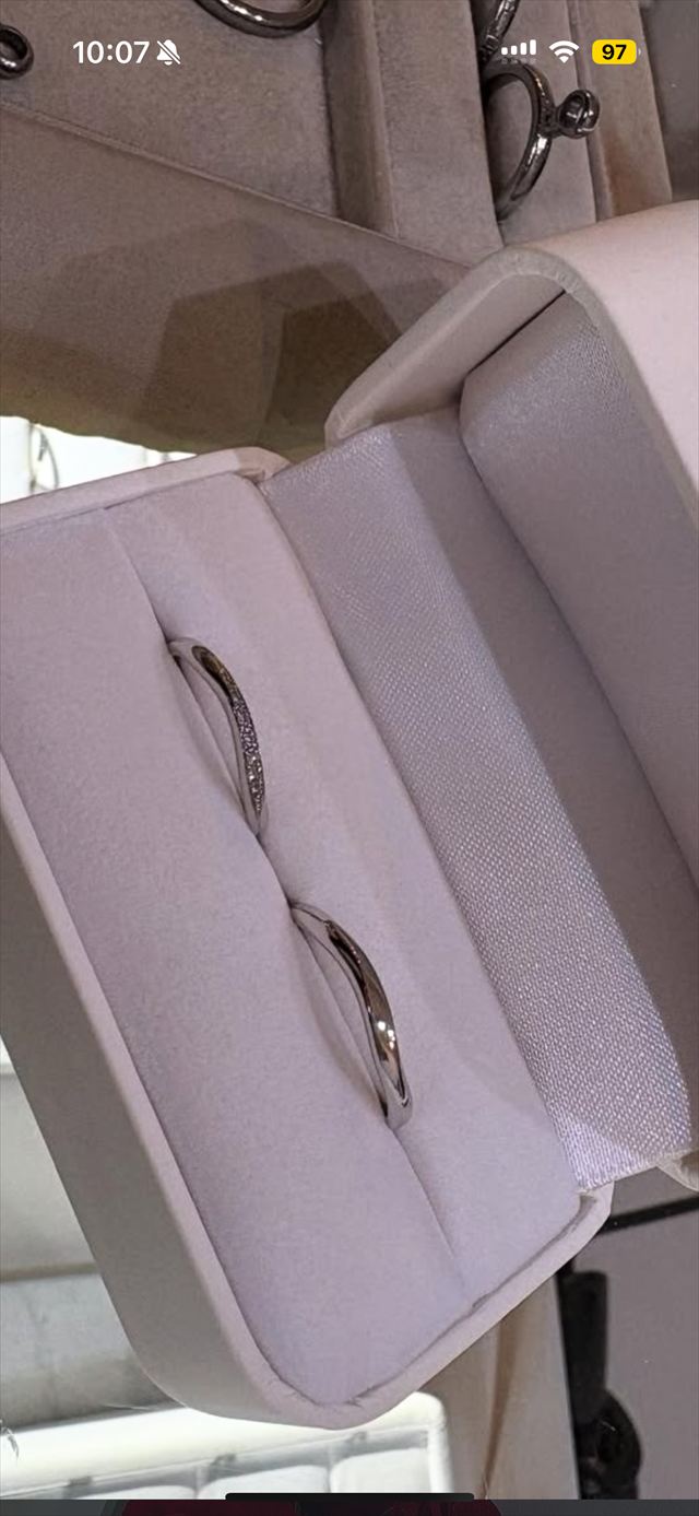 キラキラしたダイヤがある指輪が欲しかったのですが、高くても20万とふたりで予算が決まっていたので、それに合わせて色んなお店を調べて気に入った指輪を探すのがとても大変でした。指輪にお互いの名前を刻印出来るかどうかというのも条件に入れたかったので、入れられるお店を探しました。